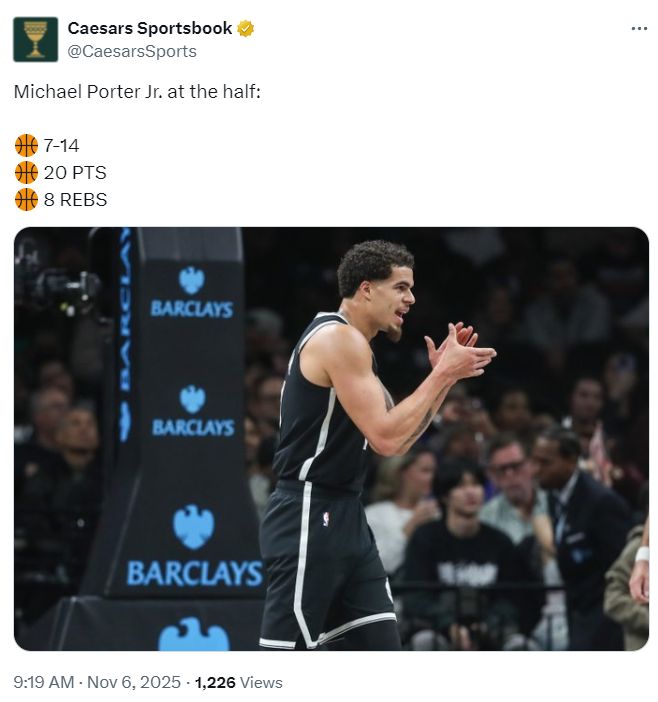 全場比賽,小波特35分鐘,20中10,三分11中4,罰球11中8,拿到32分11籃板3助攻1搶斷,命中率50%,三分命中率36.3%,小波特打成籃網(wǎng)第一核心。